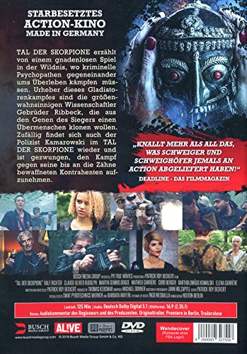 Tal der Skorpione erzählt von einem Gnadenlosen Spiel in der Wildnis, wo kriminelle Psychopathen gegeneinander ums Überleben kämpfen müssen. Urheber dieses Gladiatorenkampfes sind die grössenwahnsinnigen Wissenschaftler Gebrüder Ribbeck, die aus den Genen des Siegers einen Übermenschen klonen wollen. Mittendrin findet sich der Polizist Kamarowski wieder - und steht nun bis an die Zähne bewaffneten Schwerverbrechern gegenüber.