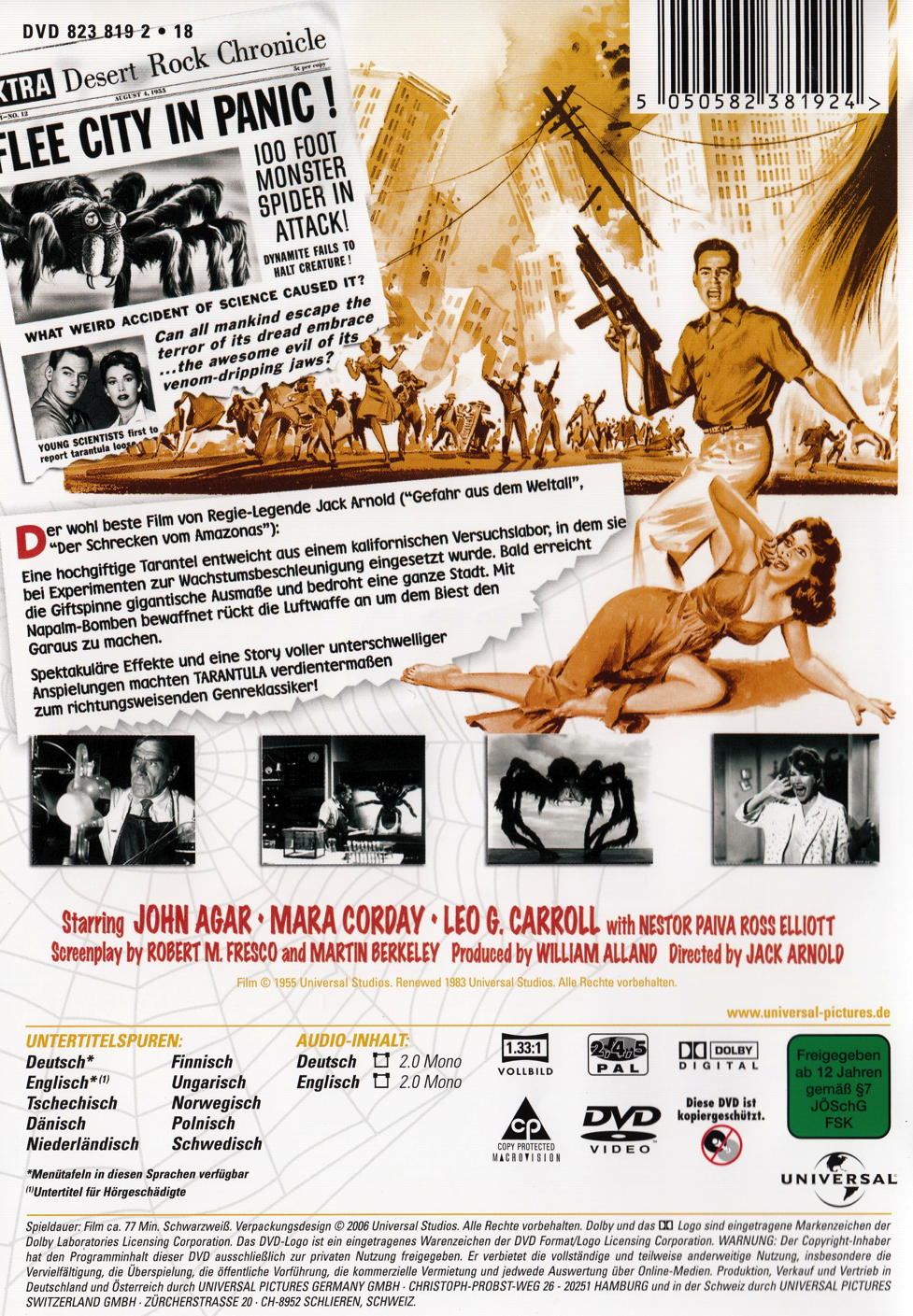 Der wohl beste Film von Regie-Legende Jack Arnold: Eine hochgiftige Tarantel entweicht aus einem kalifornischen Versuchslabor, in dem sie bei Experimenten zur Wachstumsbeschleunigung eingesetzt wurde. Bald erreicht die Giftspinne gigantische Ausmasse und bedroht eine ganze Stadt. Mit Napalm-Bomben bewaffnet rückt die Luftwaffe an um dem Biest den Garaus zu machen.