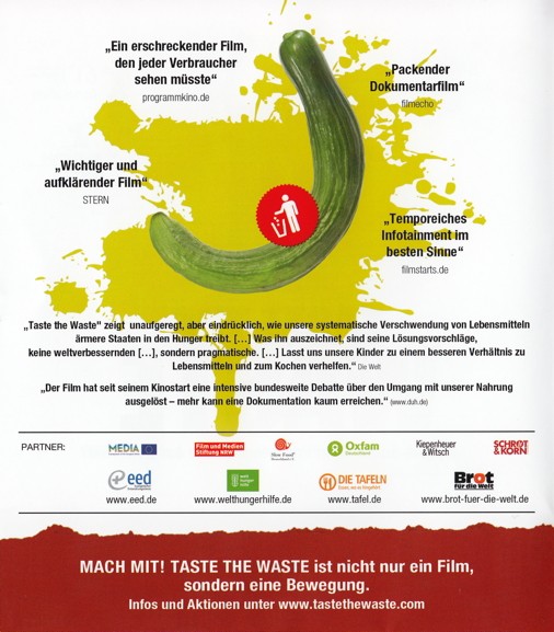 Deutsche Haushalte werfen jährlich Lebensmittel für 20 Milliarden Euro weg - so viel wie der Jahresumsatz von Aldi in Deutschland. Das Essen das wir in Europa wegwerfen, würde zwei Mal reichen, um alle Hungernden der Welt zu ernähren. Valentin Thurn hat den Umgang mit Lebensmitteln international recherchiert und kommt zu haarsträubenden Ergebnissen. Jeder zweite Kopfsalat wird aussortiert, jedes fünfte Brot muss ungekauft entsorgt werden. Kartoffeln, die der offiziellen Norm nicht entsprechen, bleiben auf dem Feld liegen und kleine Schönheitsfehler entscheiden über ein Schicksal als Ladenhüter. In den Abfall-Containern der Supermärkte findet man überwältigende Mengen einwandfreier Nahrungsmittel, original verpackt, mit gültigem Mindesthaltbarkeitsdatum. Auf der Suche nach den Ursachen und Verantwortlichen deckt er ein weltweites System auf, an dem sich alle beteiligen. Die Folgen reichen weit, denn die Auswirkungen auf das Weltklima sind verheerend. TASTE THE WASTE zeigt dass ein weltweites Umdenken stattfindet und dass es Menschen gibt, die mit Ideenreichtum und Engagement diesem Irrsinn entgegentreten.