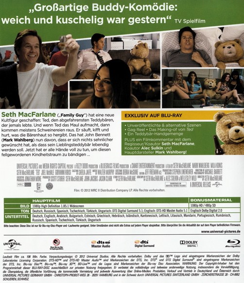 Ted ist der abgefahrenste Teddybär, der je über die Leinwand flimmerte. Ted kann sprechen, was nicht selten in kräftiges Fluchen ausartet, er säuft, kifft und hurt, was die Bärenhaut so hergibt. Das hat John Bennett (Mark Wahlberg) nun davon, dass er sich nichts sehnlicher gewünscht hat, als dass sein Lieblingsteddybär lebendig werden soll. Jetzt hat er alle Hände voll zu tun, um diesen fellgewordenen Kindheitstraum zu bändigen...