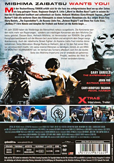 Im Jahr 2039 haben die Weltkriege die Menschheit nahezu ausgelöscht. Die Kontinente werden nicht mehr von Regierungen, sondern von mächtigen Konzernen wie dem Mishima Zaibatsu geleitet. Dessen Boss, Heihachi Mishima, ist Veranstalter von TEKKEN. Der grösste Kampfsportwettbewerb soll die Massen bei Laune halten und verspricht dem Sieger ewige Anerkennung. Auch der rebellische Street Fighter Jin Kazama (John Foo) möchte daran teilnehmen. Seine Motivation: Blutige Rache an Heihachi, den er für den Tod seiner Mutter verantwortlich macht. Um seinen inneren Dämonen zu bändigen, nimmt Jin am KING OF IRON FIST TOURNAMENT teil. Im Verlauf des Turniers offenbart sich ihm dabei die dunkle Seite des Mishima-Imperiums und er entdeckt ein geheimes Projekt, welches die Welt für immer verändern könnte