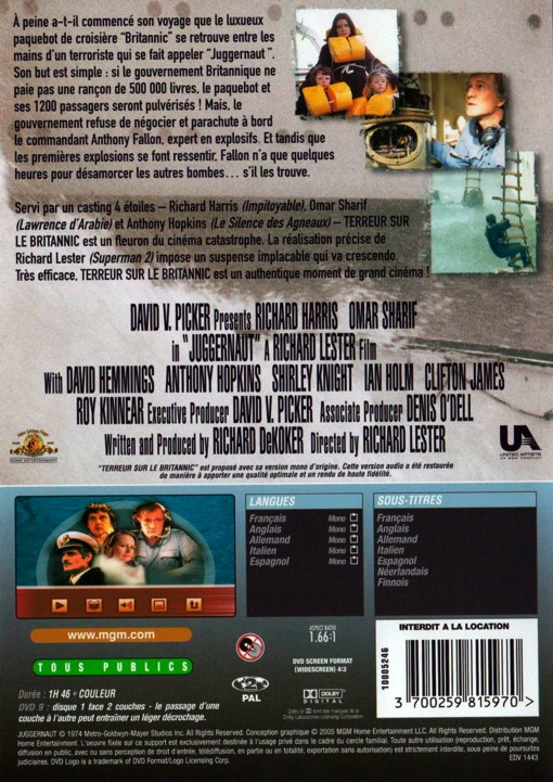 A peine a-t-il commencé son voyage que le luxueux paquebot de croisière "Britannic" se retrouve entre les mains d'un terroriste qui se fait appeler "Juggernaut". Son but est simple : si le gouvernement Britannique ne paie pas une rançon de 500 000 livres, le paquebot et ses 1200 passagers seront pulverisés ! Mais le gouvernement refuse de négocier et parachute à bord le commandant Anthony Fallon, expert en explosifs. Et tandis que les premières explosions se font ressentir, Fallon n'a que quelques heures pour désamorcer les autres bombes... s'il les trouve.