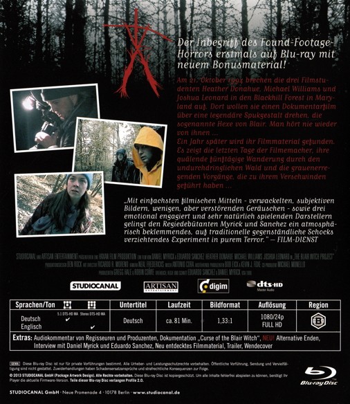 - Schauspieler Heather Donahue, Joshua Leonard, Michael C. Williams, Bob Griffin, Jim King, Sandra Sánchez, Ed Swanson, Patricia DeCou, Mark Mason, Jackie Hallex