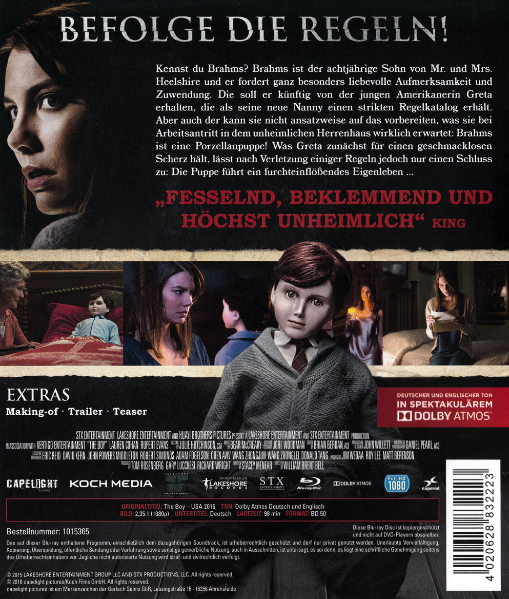 Kennst du Brahms? Brahms ist der achtjährige Sohn von Mr. und Mrs. Heelshire und er fordert ganz besonders liebevolle Aufmerksamkeit und Zuwendung. Die soll er künftig von der jungen Amerikanerin Greta erhalten, die als seine neue Nanny einen strikten Regelkatalog erhält. Aber auch der kann sie nicht ansatzweise auf das vorbereiten, was sie bei Arbeitsantritt im pittoresken Herrenhaus wirklich erwartet: Brahms ist eine Porzellanpuppe! Was Greta zunächst für einen grausamen Scherz hält, lässt nach Verletzung einiger Regeln jedoch nur einen Schluss zu: Die Puppe führt ein furchteinflössendes Eigenleben...