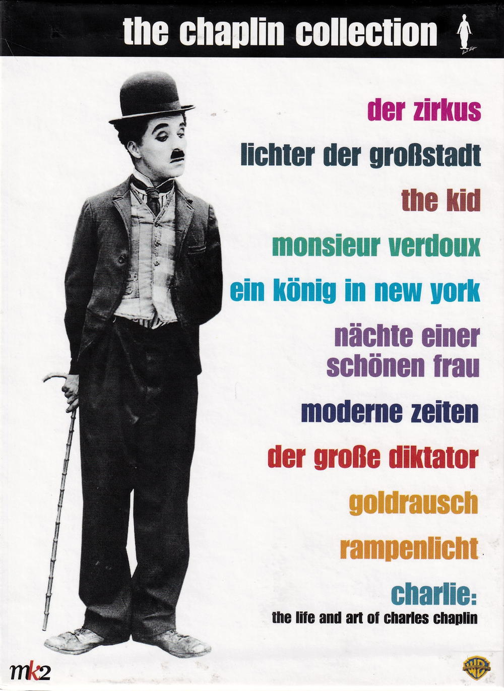 18 DVDs in 10 Full-Digipacks. Enthält die folgenden Filme: - Der Zirkus (2DVD) - Lichter der Grossstadt (2DVD) - The Kid (2DVD) - Monsieur Verdoux - Ein König in New York (2DVD) - Nächte einer schönen Frau (2DVD) - Moderne Zeiten (2DVD) - Der grosse Diktator (2DVD) - Goldrausch (2DVD) - Rampenlicht (2DVD) - Charlie - The Life and Art of Charles Chaplin (Doku)