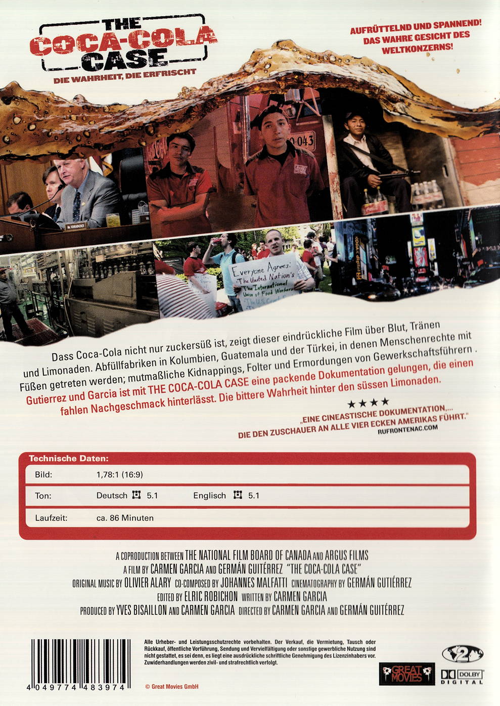 In Kolumbien wird im Schnitt jede Woche ein Gewerkschaftler umgebracht, was den US-Konzern Coca Cola nicht davon abhält, dort grosse Abfüllanlagen zu unterhalten. Amerikanische Arbeitsrechtler untersuchen daraufhin das Gebaren des amerikanischen Getränkekonzerns in Kolumbien und machen wie zuvor auch in Indien oder der Türkei diverse schwere Menschenrechtsverstösse geltend. Coca Cola bestreitet alle Vorwürfe, die Familien Ermordeter ziehen vor Gericht und erreichen nach fünf umkämpften Jahren immerhin einen Vergleich.