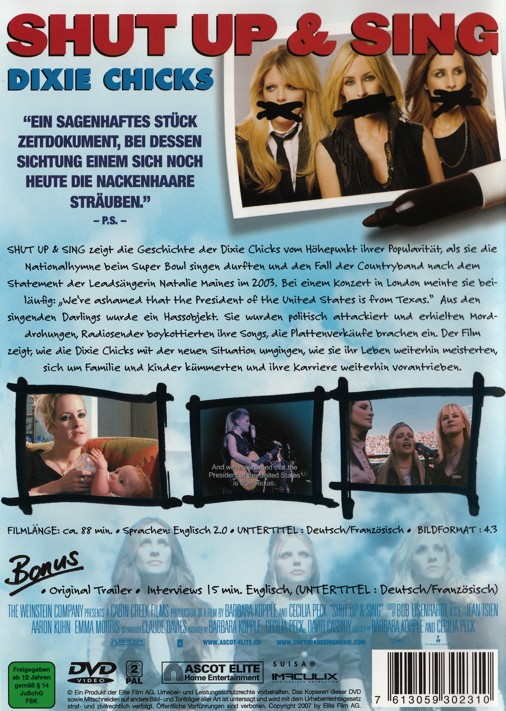 Shut Up & Sing die Geschichte der Dixie Chicks vom Höhepunkt ihrer Popularität, als sie die Nationalhymne beim Super Bowl singen durften und den Fall der Countryband nach dem Statement der Leadsängerin Natalie Maines im 2003. Bei einem Konzert in London meinte sie beiläufig: "We're ashamed that the President of the United States is from Texas."