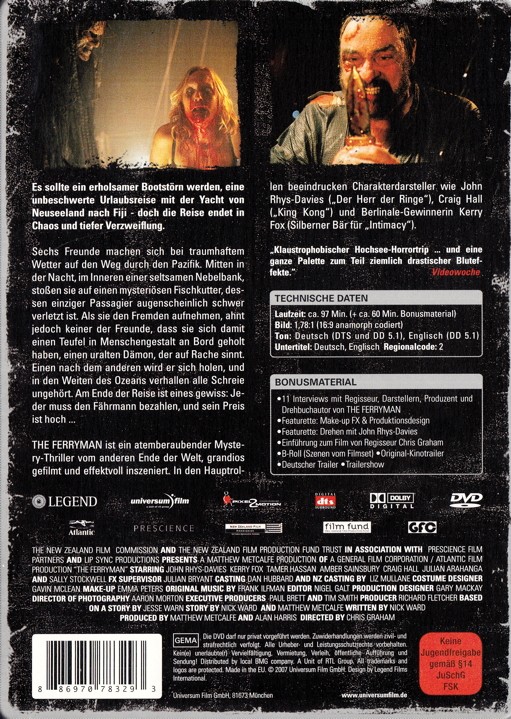 Es sollte ein erholsamer Bootstörn werden, eine unbeschwerte Urlaubsreise mit der Yacht von Neuseeland nach Fiji - doch es endet in Chaos und tiefer Verzweiflung. Sechs Freunde machen sich bei traumhaftem Wetter auf den Weg durch den Pazifik. Mitten in der Nacht, im Inneren einer seltsamen Nebelbank, stoßen sie auf einen mysteriösen Fischkutter, dessen einziger Passagier augenscheinlich schwer verletzt ist. Als sie den Fremden aufnehmen, ahnt jedoch keiner der Freunde, dass sie sich damit einen Teufel in Menschengestalt an Bord geholt haben, einen uralten Dämon, der auf Rache sinnt. Einen nach dem anderen wird er sich holen, und in den Weiten des Ozeans verhallen alle Schreie ungehört. Am Ende der Reise ist eines gewiss: Jeder muss den Fährmann bezahlen, und sein Preis ist hoch ...