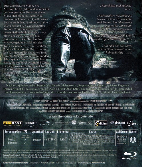 Ein Mann, eine Mission, drei Zeitalter: 1535 versucht der Konquistador Tomas in einem Maya-Heiligtum im südamerikanischen Dschungel den Quell ewigen Lebens zu finden. Fünfhundert Jahre später arbeitet der Wissenschaftler Tommy Creo verzweifelt an einer neuen Heilmethode für Krebs, um seiner todkranken Frau Izzy das Leben zu retten. Doch Izzi hat ihre Methode gefunden, den bevorstehenden Tod zu akzeptieren: Für ihren Mann schreibt sie ein Buch, das vom Schicksal des Eroberers Tomas erzählt und bittet ihn, es zu beenden. Doch erst im Jahr 2500 in einer fantastischen Reise, die ihn durch Raum und Zeit in die Transzendenz führt, findet Tom die Antwort auf seine Fragen.