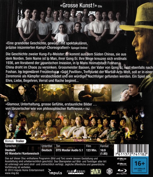Ip Man, aufgewachsen im Süden Chinas, nimmt seit seiner Kindheit an den Kung-Fu-Wettkämpfen im berühmten Goldenen Pavillon teil. Eines Tages taucht Meister Gong aus dem Nordosten auf, um das Ende seiner Laufbahn vor Ort zeremoniell zu begehen. Der eine hört auf, der andere setzt seinen Weg fort. Wem aber gebührt es fortan, sich Grossmeister zu nennen? Ip Man? Meister Gongs Tochter Gong Er? Oder gar Yi Xian Tian, den es ins entfernte Taiwan verschlagen hat? Einige wollen schützen, was ihnen gehört, andere suchen nach Erleuchtung und wieder andere nur einen Kampf.