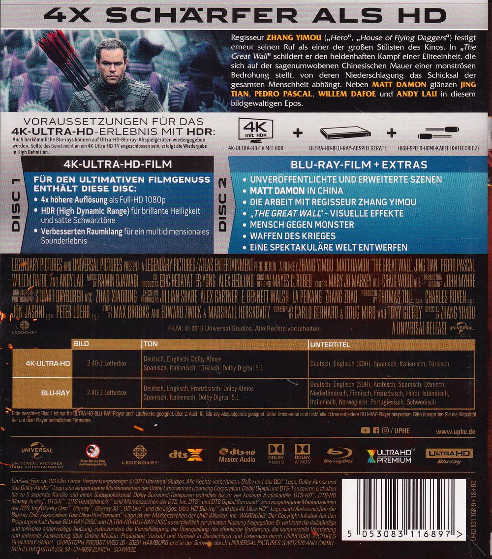 - Schauspieler Matt Damon, Andy Lau, Willem Dafoe, Jing Tian, Hanyu Zhang