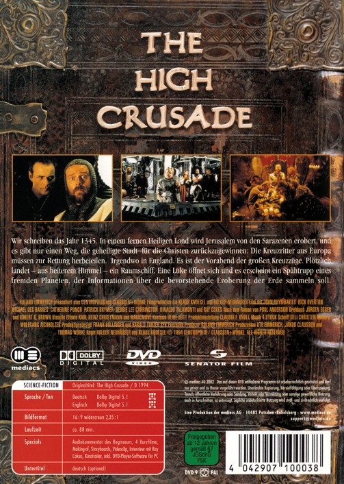 Wir schreiben das Jahr 1345. In einem fernen Heiligen Land wird Jerusalem von den Sarazenen erobert, und es gibt nur einen Weg, die geheiligte Stadt für die Christen zurückzugewinnen: Die Kreuzritter aus Europa müssen zur Rettung herbeieilen. Irgendwo in England. Es ist der Vorabend der grossen Kreuzzüge. Plötzlich landet - aus heiterem Himmel - ein Raumschiff. Eine Luke öffnet sich und es erscheint ein Spähtrupp eines fremden Planeten, der Informationen über die bevorstehende Eroberung der Erde sammeln soll.