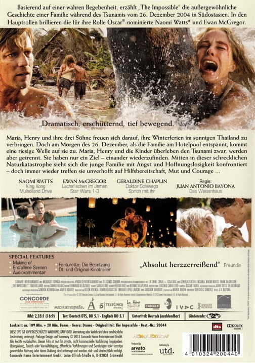 Maria (Naomi Watts), Henry (Ewan McGregor) und ihre drei Söhne freuen sich darauf, ihre Winterferien im sonnigen Thailand zu verbringen. Doch am Morgen des 26. Dezember, als die Familie nach den Weihnachtsfeierlichkeiten am Hotel-Pool entspannt, kommt eine riesige Welle schwarzen Wassers auf sie zu. Maria, Henry und die Kinder überleben den Tsunami zwar, werden aber getrennt. Sie kämpfen sich durch das Wasser und haben nur ein Ziel – einander wiederzufinden. Mitten in dieser schrecklichen Naturkatastrophe ist die junge Familie mit Angst und Hoffnungslosigkeit konfrontiert – doch immer wieder treffen sie auch unverhofft auf Hilfsbereitschaft, Mut und Courage.