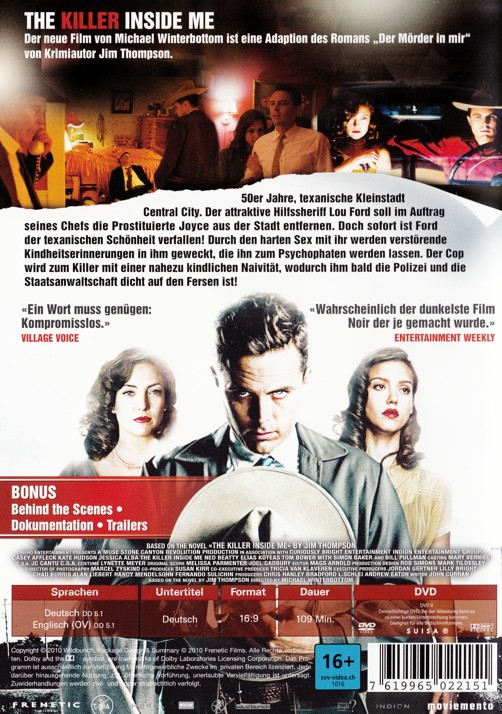 "Wenn du in ´ner Kleinstadt aufwächst, glaubt jeder zu wissen, wer du bist." Lou Ford hat Probleme. Frauenprobleme. Jobprobleme. Die Tatsache, dass er ein Sadist, Mörder und Psychopath ist, hilft ihm auch nicht grade, denn so langsam gehen ihm die Alibis für die Leichen aus, die seinen Weg pflastern. Die gutmütige Prostituierte Joyce (Jessica Alba) verfällt dem Teufel in Uniform sofort und zusammen leben sie ihre bizarren sexuellen Phantasien aus. Seine unschuldige Freundin Amy (Kate Hudson) ahnt derweil nicht das Geringste davon und glaubt des Beteuerungen des kaltblütigen Sheriffs ein ums andere Mal... Lassen Sie sich in einen Strudel aus Sex, Lügen und Mord hinabziehen und das Blut wird Ihnen in den Adern gefrieren...