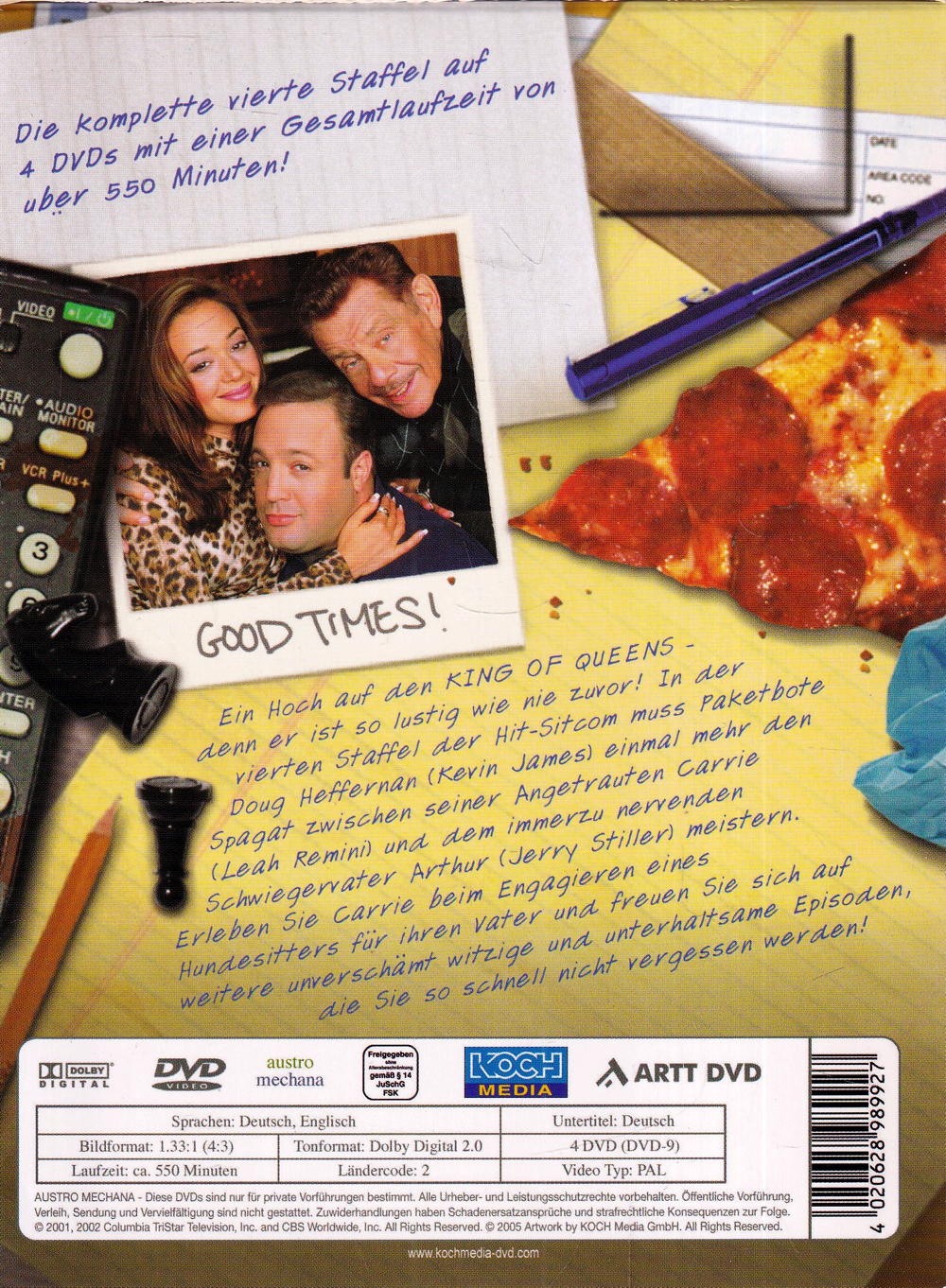 Hoch lebe der "King of Queens" - denn er ist witziger als je zuvor! In der unvergesslichen vierten Staffel der Kult-Sitcom muss Paketzusteller Doug Heffernan jeden privaten Moment mit seiner Frau Carrie auskostet. Denn die königliche Nervensäge im Keller, auch bekannt als Arthur, möchte soviel Zeit wie möglich mit dem Lieblings-Schwiegersohn verbringen. Das Installieren einer versteckten Kamera, um Arthur auszuspionieren, un die Hundesitterin Holly, die Arthur jeden Tag ausführt, sind nur zwei Beispiele, warum Doug zum Comedy-Champion gekrönt wurde.