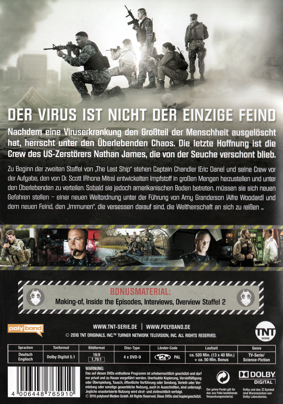 Zu Beginn der zweiten Staffel von "The Last Ship" stehen Captain Chandler und seine Crew vor der Aufgabe, den von Dr. Scott entwickelten Impfstoff in grossen Mengen herzustellen und unter den Überlebenden zu verteilen. Sobald sie jedoch amerikanischen Boden betreten, müssen Sie sich neuen Gefahren stellen - einer neuen Weltordnung unter der Führung von Amy Granderson und dem neuen "Feind", den Immunen, die versessen darauf sind die Weltherrschaft an sich zu reissen.
