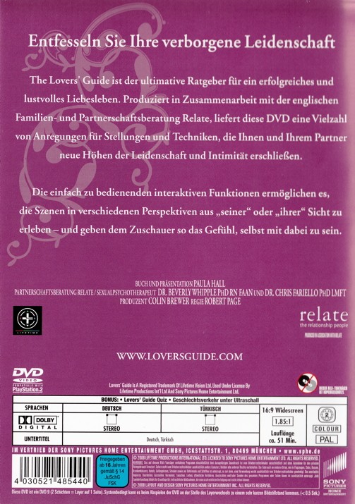 The Lovers' Guide ist der ultimative Ratgeber für ein erfolgreiches und lustvolles Liebesleben. Produziert in Zusammenarbeit mit der englischen Familien- und Partnerschaftsberatung Relate, liefert diese DVD eine Vielzahl von Anregungen für Stellungen und Techniken, die Ihnen und Ihrem Partner neue Höhen der Leidenschaft und Intimität erschließen.