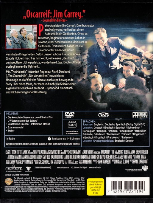Peter Appleton (Jim Carrey), Drehbuchautor aus Hollywood, verliert bei einem Autounfall sein Gedächtnis. Ohne es zu wissen, beginnt er ein neues Leben in Lawson, einer beschaulichen Kleinstadt in Kalifornien. Dort nämlich halten ihn die Einwohner für einen seit Jahren vermissten Kriegshelden. Selbst dessen schöne Freundin Adele (Laurie Holden) macht es ihm leicht, seine neue "Identität" zu akzeptieren. Eine perfekte, wunderbare Lüge. Doch auf Dauer obsiegt immer die Wahrheit....