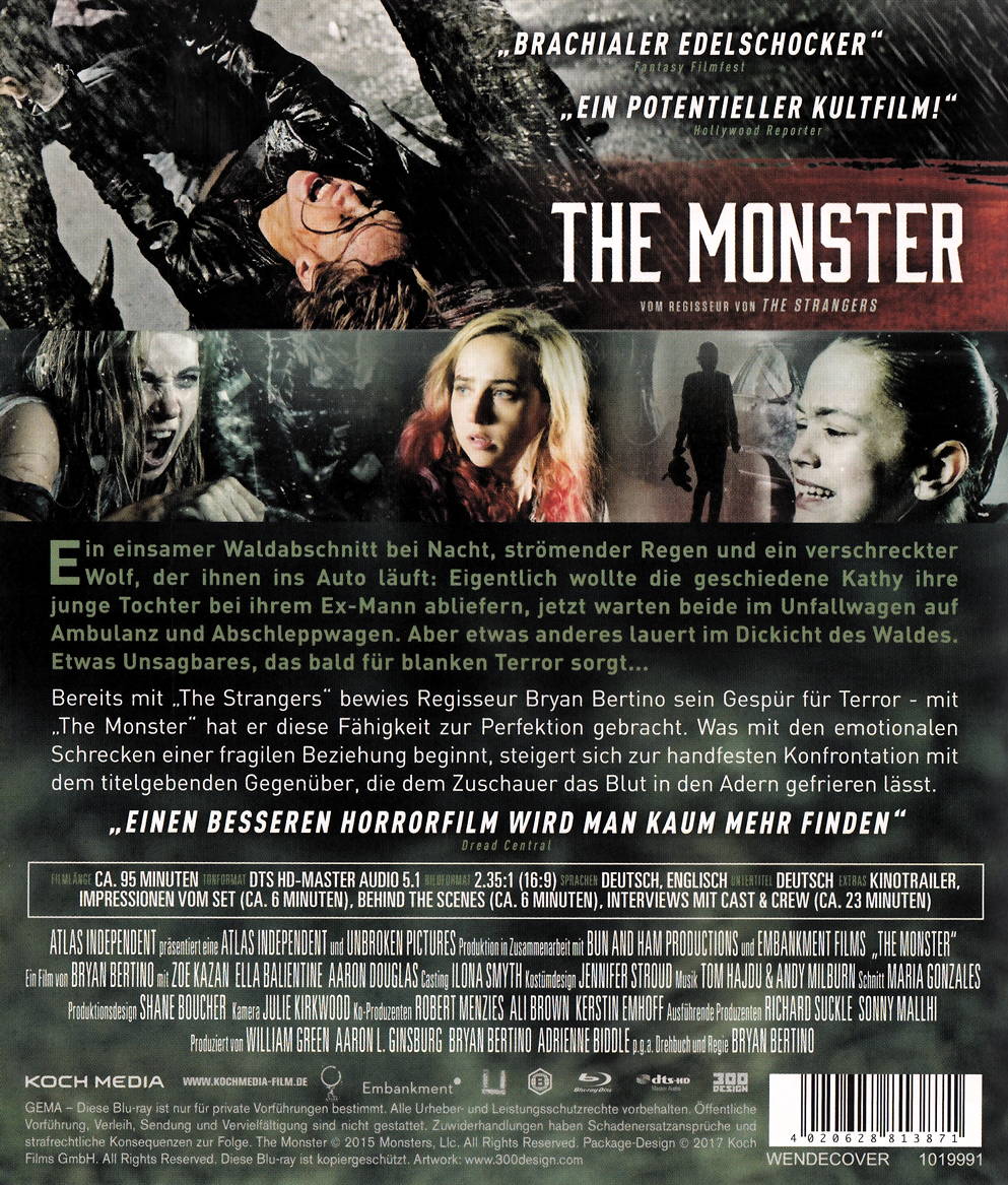 Ein einsamer Waldabschnitt bei Nacht, strömender Regen und ein verschreckter Wolf, der ihnen ins Auto läuft: Eigentlich wollte die geschiedene und alkoholkranke Kathy ihre junge Tochter Lizzy bei ihrem Ex-Mann abliefern, jetzt warten beide im Unfallwagen auf Ambulanz und Abschleppwagen. Aber etwas anderes lauert im Dickicht des Waldes noch auf das Mutter und Tochter-Gespann. Etwas Unsagbares, das nicht nur den Wolf das Leben gekostet hat, sondern bald für blanken Terror und eine Erkenntnis sorgt: Monster existieren wirklich!