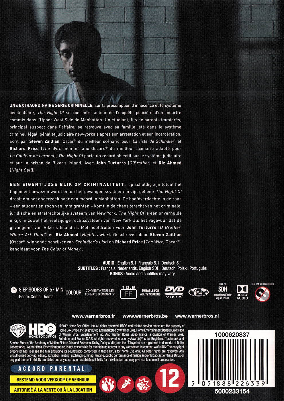 The night of - Die Wahrheit einer Nacht ist eine moderne, unbequeme Aufarbeitung der Themen Kriminalität, Schuldvermutung und heutiger Strafvollzug: In der Upper West Side von Manhattan geschieht ein Mord - die Polizei nimmt die Ermittlungen auf. Der Hauptverdächtige ist ein Student mit Migrantenhintergrund - er wird festgenommen, landet in Untersuchungshaft und gerät so ebenso wie seine Familie in den Strudel des New Yorker Polizei-, Anwalts- und Gerichtssystems samt Vollzugsapparat.