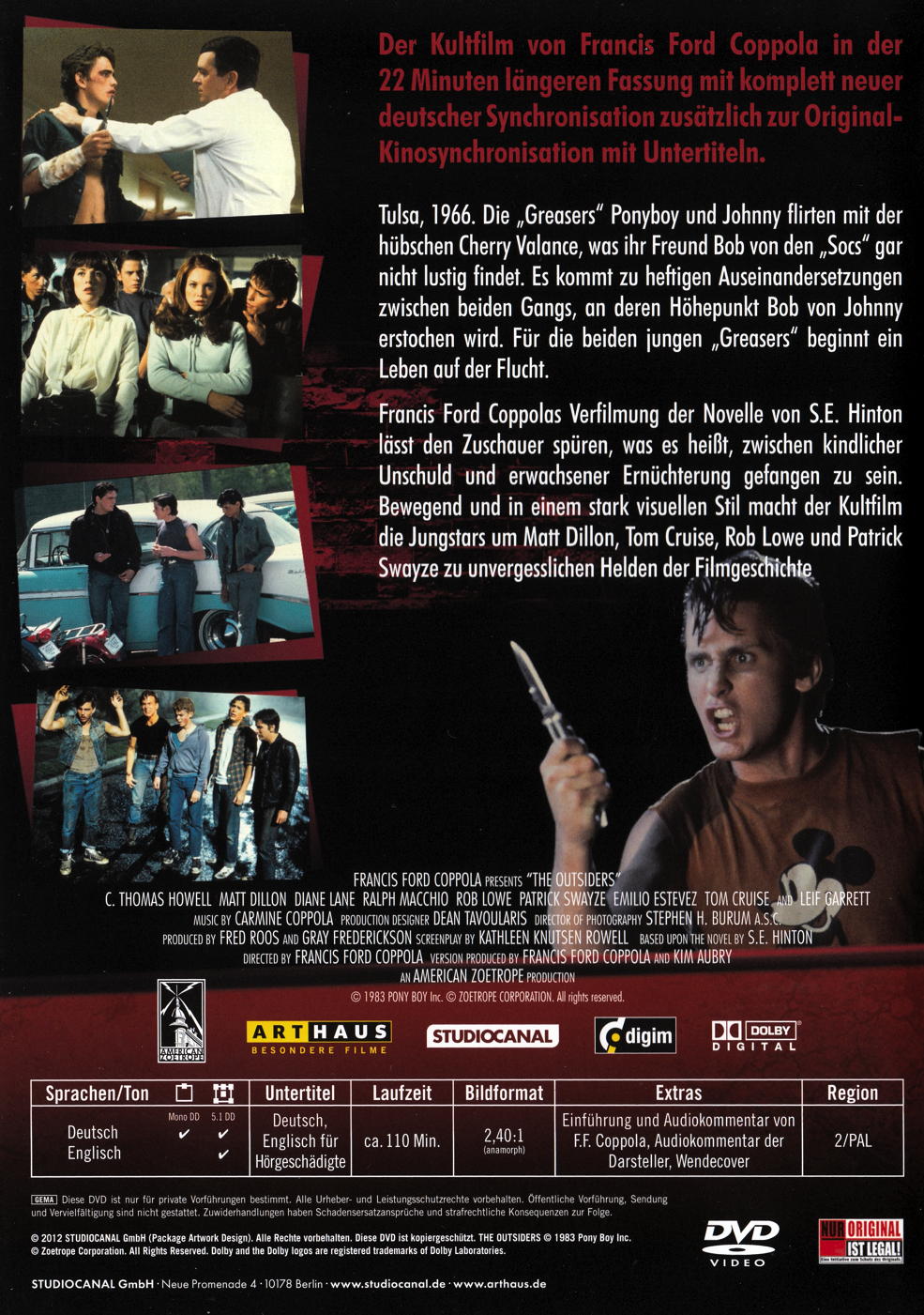 Amerika in den 1960er-Jahren: Ponyboy und Johnny, Mitglieder der Gang „Greasers“, flirten mit der hübschen Cherry Valance. Dies bleibt allerdings von deren Freund Bob, der selbst Teil einer Gang ist, nicht unentdeckt. Schnell kommt es zu heftigen Auseinandersetzungen zwischen den "Greasers" und den "Socs", wobei Bob von Johnny erstochen wird. Für Johnny und Ponyboy beginnt ein Leben auf der Flucht.