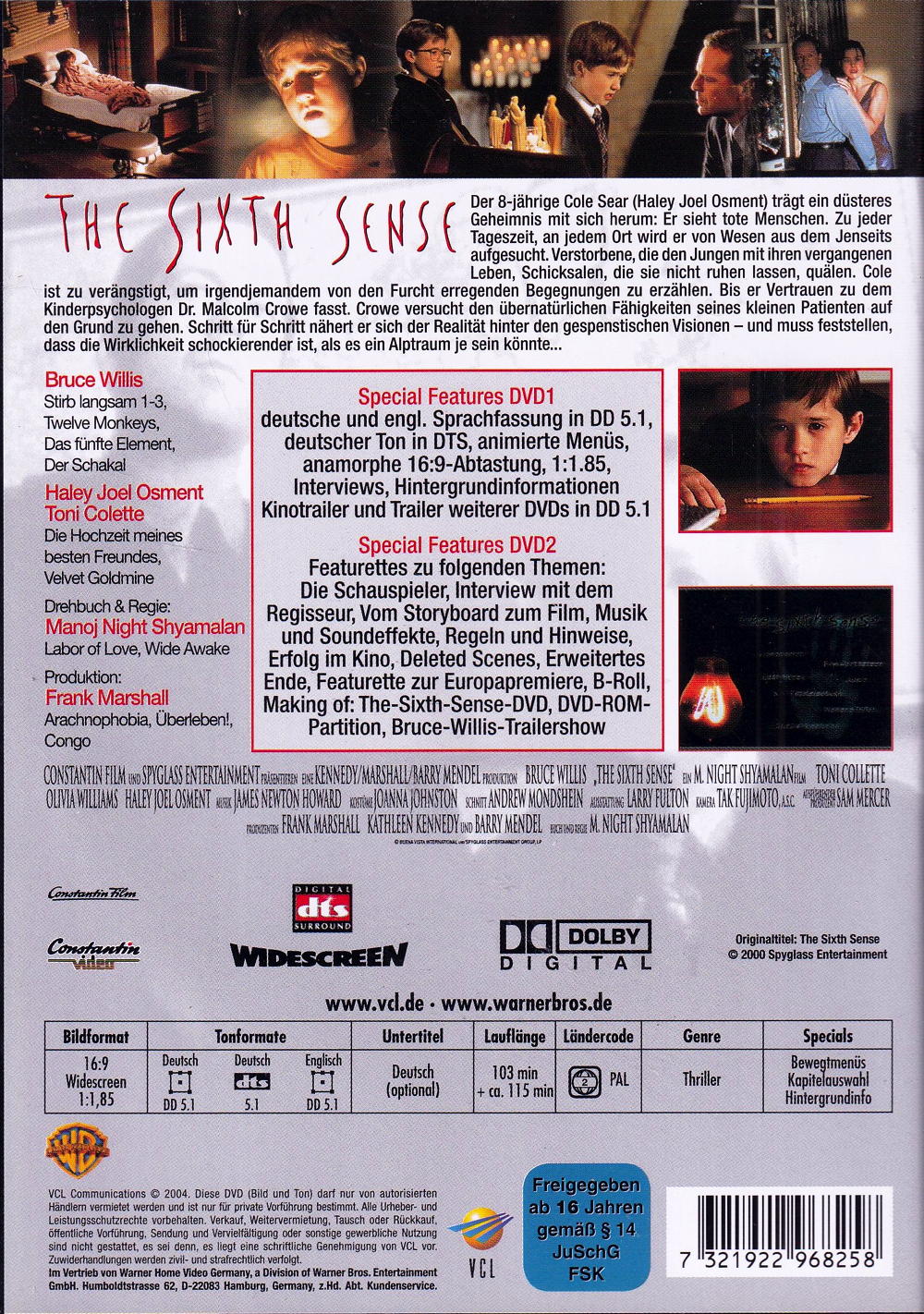 Bruce Willis, Haley Joel Osment, Toni Collette, Olivia Williams, Donnie Wahlberg, Andrew Mondshein, Frank Marshall, Tak Fujimoto, Sam Mercer, M. Night Shyamalan...Joanna Johnston, Larry Fulton, Allan Byer, Philip J. Messina, Kathleen Kennedy, Barry Mendel