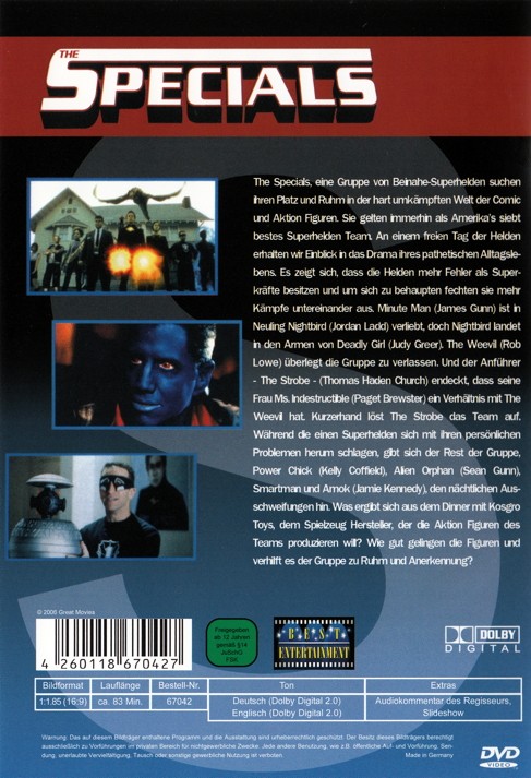 The Specials, eine Gruppe von Beinahe-Superhelden suchen ihren Platz und Ruhm in der hart umkämpften Welt der Comic- und Actionfiguren. Sie gelten immerhin als Amerika's siebtbestes Superhelden Team. An einem freien Tag der Helden erhalten wir Einblick in das Drama ihres pathetischen Alltagslebens. Es zeigt sich, dass die Helden mehr Fehler als Superkräfte besitzen und um sich zu behaupten, fechten sie mehr Kämpfe untereinander aus. Minute Man ist in Neuling Nightbird verliebt, doch die landet in den Armen von Deadly Girl. The Weevil überlegt die Gruppe zu verlassen. Und der Anführer - The Strobe - entdeckt, dass seine Frau Ms. Indestructable ein Verhältnis mit The Weevil hat. Kurzerhand löst The Strobe das Team auf. Während die einen Superhelden sich mit ihren persönlichen Problemen herumschlagen, gibt sich der Rest der Gruppe den nächtlichen Ausschweifungen hin. Was ergibt sich aus dem Dinner mit Kosgro Toys, dem Spielzeughersteller, der die Actionfiguren des Teams produzieren will? Wie gut gelingen die Figuren und verhilft es der Gruppe zu Ruhm und Anerkennung?