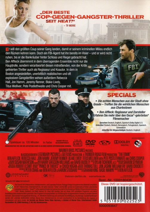 Ben Affleck übernimmt im überragenden Ensemble nicht nur die Hauptrolle, sondern verantwortet diesen mitreissenden, von der Kritik gefeierten Thriller auch als Regisseur und Co-Autor. In dem in Boston angesiedelten, unerbittlich realistischen und oft explosiven Gangsterfilm wirken ausserdem Rebecca Hall, Jon Hamm, Jeremy Renner, Blake Lively, Titus Welliver, Pete Postlethwaite und Chris Cooper mit.
