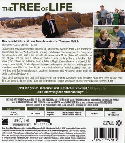 Jack (Hunter McCracken) wächst in den 60er-Jahren im Südwesten der USA als ältester von drei Brüdern auf. Die Welt scheint in Ordnung und alles geht seinen gewohnten Gang. Aber der kleine Jack sieht Risse in der Fassade. Genau wie seine Mutter (Jessica Chastain) hat er die Fähigkeit, mit der Seele zu sehen und dadurch Liebe und Empathie zu entwickeln. Sein Vater (Brat Pitt) will ihn mit harter Hand auf das richtige Leben vorbereiten und predigt dem Jungen unnachgiebig für die eigenen Interessen zu kämpfen. Jack ist hin- und hergerissen zwischen seinen Eltern und ihren Idealen. Als er im laufe seiner Kindheit zusätzlich mit Krankeit, Leid und Tod konfrontiert wird, erscheint im seine heile Kinderwelt immer mehr als undurchdringliches Labyrinth.