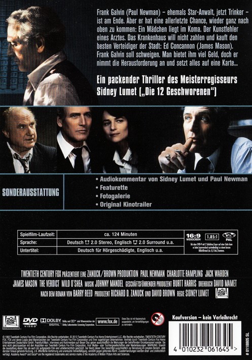 Frank Calvin - ehemals Staranwalt, jetzt Trinker - ist am Ende. Aber er hat eine allerletzte Chance, weiter ganz oben zu sein: Ein Mädchen liegt im Koma. Der Kunstfehler eines Arztes. Das Krankenhaus will nicht zahlen und kauft den besten Verteidiger der Stadt. Ed Concoannon. Frank Calvin soll schweigen. Man bietet ihm viel Geld, doch er nimmt die Herausforderung an. Er setzt alles auf eine Karte.