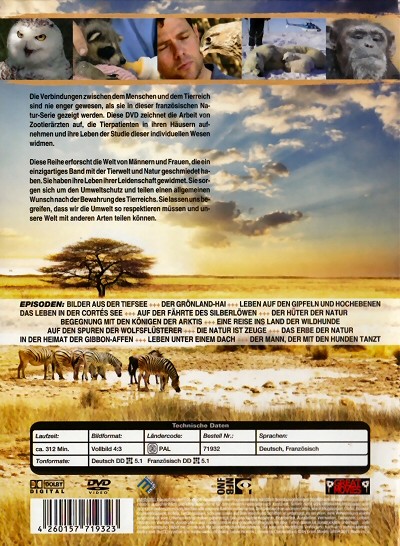 Diese Reihe erforscht die Welt von Männern und Frauen, die ein einzigartiges Band mit der Tierwelt und Natur geschmiedet haben. Sie haben ihr Leben ihrer Leidenschaft gewidmet. Sie sorgen sich um den Umweltschutz und teilen den Wunsch nach der Bewahrung des Tierreichs. Sie lassen uns begreifen, dass wir respektieren müssen und unsere Welt mit anderen Arten teilen können.