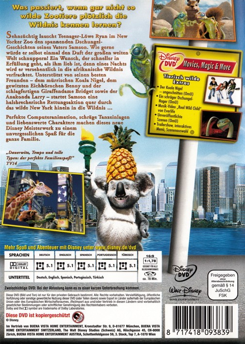 Sehnsüchtig lauscht Teenager-Löwe Ryan im New Yorker Zoo den spannenden Dschungel-Geschichten seines Vaters Samson. Wie gerne würde er selbst einmal den Duft der grossen weiten Welt schnuppern! Ein Wunsch, der schneller in Erfüllung geht, als ihm lieb ist, denn eines Nachts wird er versehentlich in die afrikanische Wildnis verfrachtet. Unterstützt von seinen besten Freunden - dem mürrischen Koala Nigel, dem gewitzten Eichhörnchen Benny und der schlagkräftigen Giraffendame Bridget sowie der Anaconda Larry - startet Samson eine halsbrecherische Rettungsaktion quer durch das wilde New York hinein in die Wildnis...