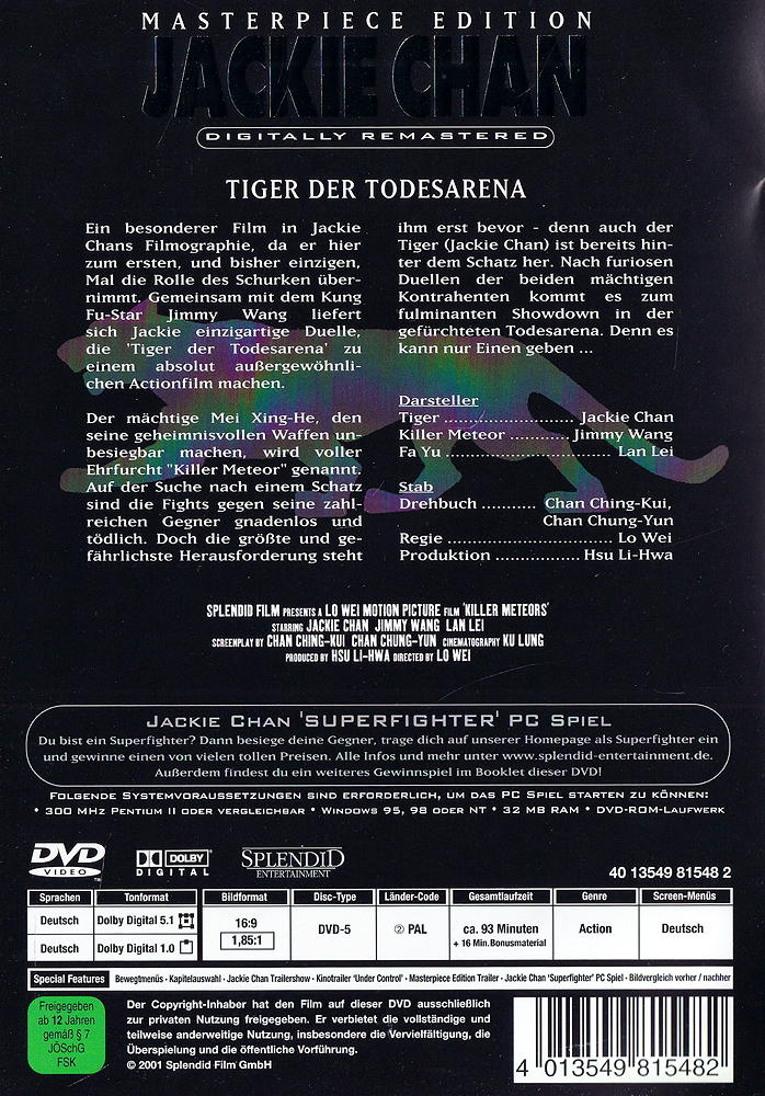 Ein besonderer Film in Jackie Chans Filmographie, da er hier zum ersten und bisher einzigen Mal die Rolle des Schurken übernimmt. Gemeinsam mit dem Kung Fu-Star Jimmy Wang liefert sich Jackie einzigartige Duelle, die "Tiger der Todesarena" zu einem absolut aussergewöhnlichen Actionfilm machen.