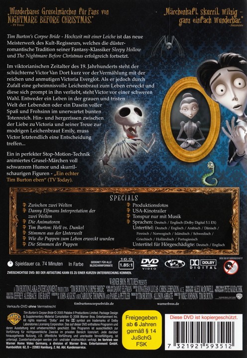 Im viktorianischen Zeitalter des 19. Jahrhunderts steht der schüchterne Victor Van Dort kurz vor der Vermählung mit der reichen und anmutigen Victoria Everglot. Als er jedoch durch Zufall eine geheimnisvolle Leichenbraut zum Leben erweckt und diese sich prompt in ihn verliebt, steht Victor vor einer schweren Wahl. Entweder ein Leben in der grauen und tristen Welt der Lebenden oder ein Dasein voller Spass und Frohsinn im unerwartet bunten Totenreich. Hin- und hergerissen zwischen der Liebe zu Victoria und seiner Treue zur modrigen Leichenbraut Emily, muss Victor letztendlich eine Entscheidung treffen...