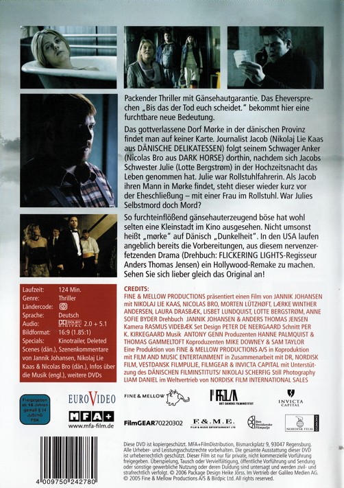 Das gottverlassene Dorf Morke in der dänischen Provinz findet man auf keiner Karte. Der Journalist Jacob folgt seinem Ex-Schwager Anker dorthin, nachdem sich seine auf den Rollstuhl angewiesene Schwester Julie noch in der Hochzeitsnacht das Leben genommen hat. Jacob und seine Familie sind fassungslos, niemand kann ihren Selbstmord nachvollziehen. Als er Anker in Morke ausfindig macht, steht dieser erneut kurz vor einer Eheschließung - und wieder sitzt die Frau im Rollstuhl. Kann das noch Zufall sein, oder ist er das Muster eines verrückten Serienkillers, der behinderte Frauen heiratet und sie in der Hochzeitsnacht ermordet? Jacob findet keine Ruhe mehr. Mit aller Kraft sucht er nach den Ursachen des Todes seiner Schwester und riskiert dabei sein eigenes Leben...