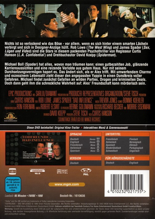 Schrecklich sind die Folgen des Einflusses, den Alex (Rob Lowe) auf Michael (James Spader) ausübt. Michael ist ein erfolgreicher aber gelangweilter Marketingexperte - das ideale Opfer für den charmanten, gutaussehenden Müßiggänger Alex. Skrupellos nützt er Michaels Schwächen. Fasziniert von der Unbekümmertheit aber auch von der Aggression, die von Alex ausgeht, durchbricht Michael die Regeln der Gesellschaft. Als Michael schließlich erkennt, an welch kriminellem Abgrund er sich befindet, scheint es kein Zurück mehr zu geben...