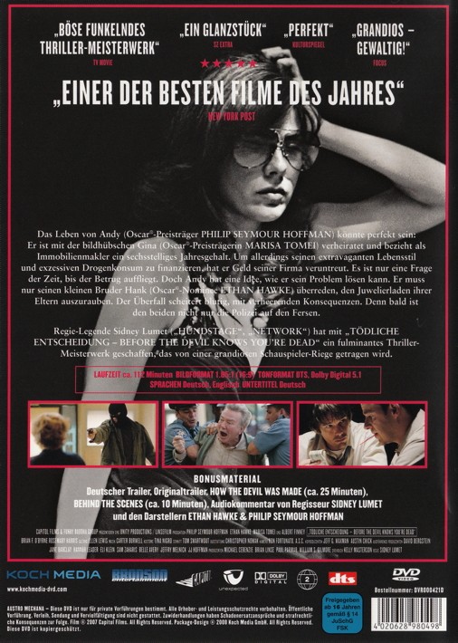 Das Leben von Andy (Oscar®-Preisträger Philip Seymour Hoffman) könnte perfekt sein: Er ist mit der bildhübschen Gina (Oscar®-Preisträgerin Marisa Tomei) verheiratet und bezieht als Immobilienmakler ein sechsstelliges Jahresgehalt. Um allerdings seinen extravaganten Lebensstil und exzessiven Drogenkonsum zu finanzieren, hat er Geld seiner Firma veruntreut. Es ist nur eine Frage der Zeit, bis der Betrug auffliegt. Doch Andy hat eine Idee, wie er sein Problem lösen kann. Er muss nur seinen kleinen Bruder Hank (Oscar®-Nomenee Ethan Hawke) überreden, den Juwelierladen Ihrer Eltern auszurauben. Der Überfall scheitert blutig, mit verheerenden Konsequenzen. Denn bald ist den beiden nicht nur die Polizei auf den Fersen.