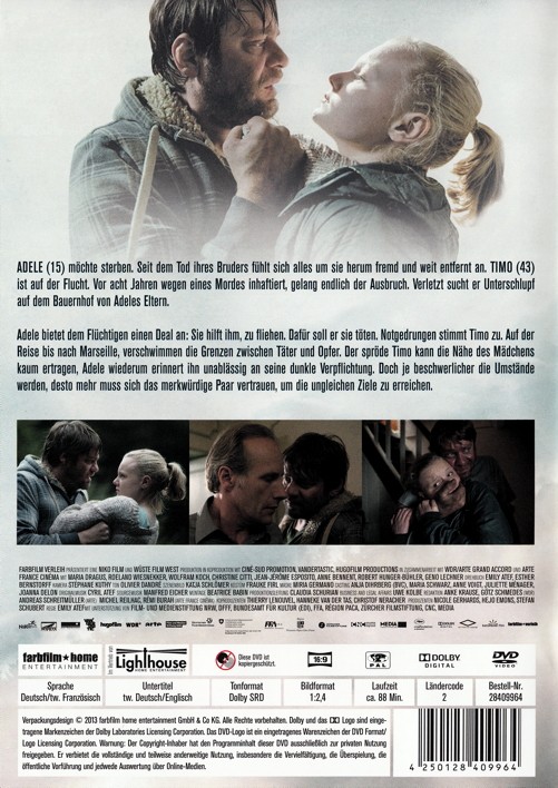 Als Adele den Flüchtigen entdeckt, bietet sie ihm einen Deal an: Sie wird ihm helfen, zu fliehen. Dafür aber soll Timo sie töten, sobald er in Sicherheit ist. Notgedrungen stimmt Timo dem morbiden Pakt zu. Argwohn und Misstrauen prägen die Reise, die beide bis nach Marseille führen wird. Die Grenzen zwischen Täter und Opfer verschwimmen. Der spröde Timo kann die Nähe des Mädchens kaum ertragen, Adele wiederum erinnert ihn unablässig an seine dunkle Verpflichtung. Je beschwerlicher allerdings die Umstände werden, desto mehr muss sich das merkwürdige Paar vertrauen, aufeinander verlassen, um die ungleichen Ziele zu erreichen.