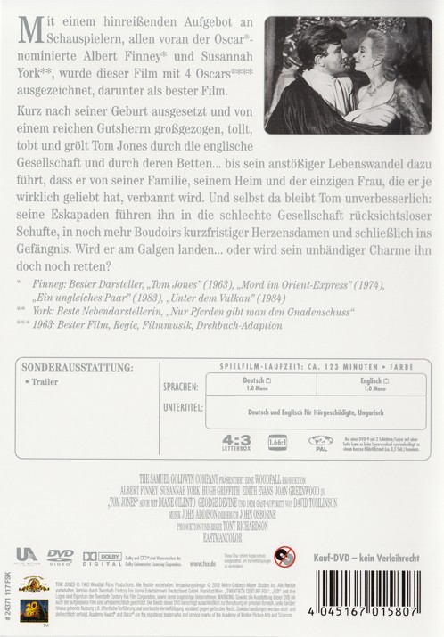 Nie hat jemand so freizügig und nachlässig gelebt wie Tom Jones. Kurz nach seiner Geburt ausgesetzt und von einem reichen Gutsherren grossgezogen, tollt, tobt und grölt Tom durch die englische Gesellschaft und durch deren Betten... bis sein anstössiger Lebenswandel dazu führt, dass er von seiner Familie, seinem Heim und der einzigen Frau, die er je wirklich geliebt hat, verbannt wird...