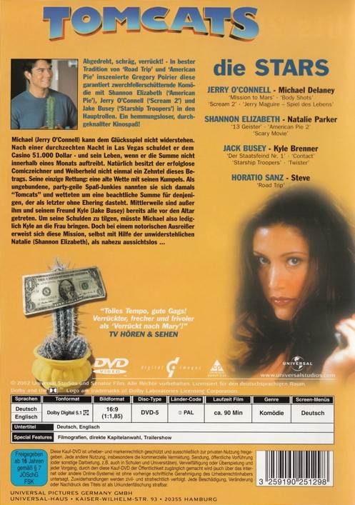 Michael kann dem Glücksspiel nicht widerstehen. Nach einer durchzechten Nacht in Las Vegas schuldet er dem Casino 51.000 Dollar - und sein Leben, wenn er die Summe nicht innerhalb eines Monats auftreibt. Natürlich besitzt der erfolglose Comiczeichner und Weiberheld nicht einmal ein Zehntel dieses Betrags. Seine einzige Rettung: eine alte Wette mit seinen Kumpels. Als ungebundene, party-geile Spass-Junkies nannten sie sich damals Tomcats und wetteten um eine beachtliche Summe für denjenigen, der als Letzter ohne Ehering dasteht. Mittlerweile sind ausser ihm und seinem Freund Kyle bereits alle vor den Altar getreten. Um seine Schulden zu tilgen, müsste Michael also lediglich Kyle an die Frau bringen. Doch bei einem notorischen Ausreisser erweist sich diese Mission selbst mit Hilfe der unwiderstehlichen Natalie, als nahezu aussichtslos...