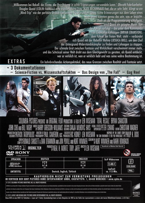 Obwohl Fabrikarbeiter Douglas Quaid eine wunderschöne Frau hat, die er sehr liebt, klingt so ein Mind-Trip wie der perfekte Urlaub von seinem frustrierenden Alltag. Echte Erinnerungen aus dem Leben eines Superspions könnten genau das sein, was er braucht. Doch als die Programmierung schiefgeht, wird Quaid ein gejagter Mann. Von der Polizei verfolgt - die unter dem Kommando von Chancellor Cohaagen, dem Führer der freien Welt, steht - verbündet sich Quaid mit der Rebellin Melina, um den Chef der Untergrund-Widerstandskämpfer zu finden und Cohaagen zu stoppen. Der schmale Grat zwischen Fantasie und Wirklichkeit verschwimmt immer mehr, und das Schicksal seiner Welt droht aus dem Gleichgewicht zu geraten, als Quaid entdeckt, wer er wirklich ist, wen er wirklich liebt und was seine wahre Bestimmung ist.