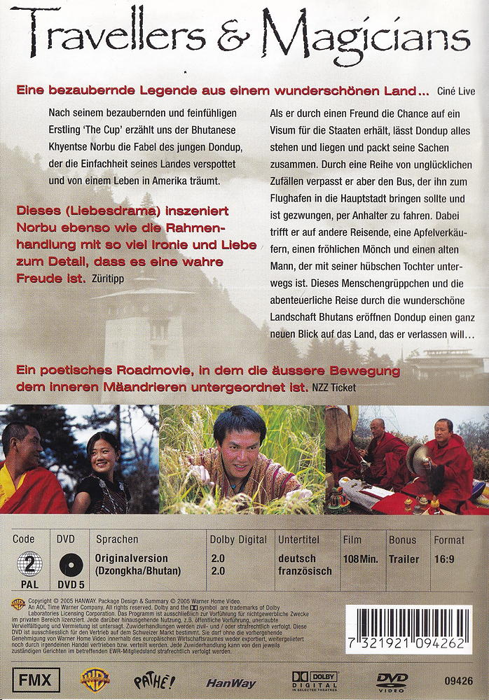 Reise zu sich selbst. In seinem zweiten Film erzählt der Tibeter Khyentse Norbu (The Cup - "Spiel der Götter") die Fabel eines jungen Bhutanesen, der die Einfachheit seines Landes verspottet und von einem Leben in Amerika träumt. Das Schicksal bietet ihm die Möglichkeit zur Verwirklichung dieses Traums - sofern er in einer bestimmten Zeit die Hauptstadt erreicht. Der Mann verpasst seinen Bus und ist gezwungen, per Anhalter zu fahren. Dabei trifft er auf andere Reisende, die ihm einen ganz neuen Blick auf das Land eröffnen, das er verlassen will. «Travellers and Magicians» ist der erste, ganz im Königreich Bhutan gedrehte Spielfilm. Er handelt von Männerträumen und der Schönheit der Frauen und wägt die Reize westlicher Vergnügen gegen die Liebe zur östlichen Heimat ab. Das klingt moralisierend. Doch Norbus Belehrungen tragen die verschmitzte Weisheit des Lächelns in sich, und so lassen wir uns zusammen mit Dondup gerne belehren, dass ein Offizier aus Bhutan in seiner Heimat eine weit ehrwürdigere Aufgabe zu erfüllen hat, als im Dreamland America Äpfel zu pflücken.