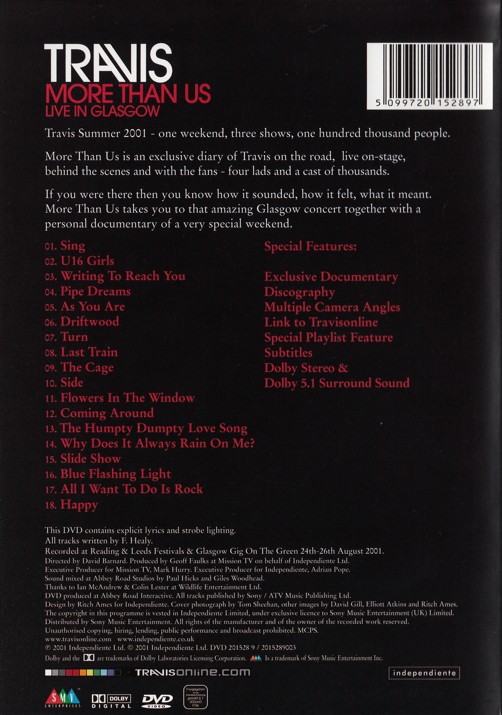 More Than Us is an exclusive diary of Travis on the road, live on-stage, behind the scenes and with the fans - four lads and a cast of thousands.