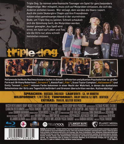 Triple Dog. So nennen amerikanische Teenager ein Spiel für ganz besonders Wagemutige: Wer mitspielt, muss sich auf Mutproben einlassen, die sich die Anderen einfallen lassen. Wer versagt, dem werden die Haare rasiert. Auch die coole Skatergöre Chapin und ihre Freundinnen nutzen einen gemeinsamen Arbeit in der sturmfreien Bude, um Triple Dog zu spielen. Schnell schaukelt sich die Stimmung hoch, die Mutproben werden immer gewagter. Aus Spass wird ernst, ein Spiel auf Leben und Tod, wie die Girls nur allzu schnell feststellen müssen.