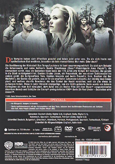 Die Bevölkerung der Kleinstadt Bon Temps/Louisiana ist bunt zusammengewürfelt: Da sind zum Beispiel die liebenswerte und naive Kellnerin Sookie Stackhouse (Oscar-Preisträgerin Anna Paquin), die niemandem verrät, dass sie Gedanken lesen kann; der 173 Jahre alte Vampir Bill Compton, der gerade in die Stadt zurückkehrt ist; Sookies Bruder Jason, ein Frauenheld, der von einem Schlamassel ins andere gerät; die hart gesottene Tara, Sookies treueste und beste Freundin; Sam, Besitzer der Bar Merlotte’s, der Sookie nie gesteht, was er für sie empfindet; Lebemann Lafayette, der ständig neue Coups plant; und weitere skurrile Bewohner, die das Dunkel der Nacht vorziehen, weil sie alle etwas zu verbergen haben. Diese in jeder Hinsicht einzigartige, von der Kritik gefeierte Serie konzipierte Alan Ball, Autor des als Bester Film mit dem Oscar ausgezeichneten "American Beauty", der auch die Emmy-preisgekrönte HBO-Serie "Six Feet Under - Gestorben wird immer" konzipierte.