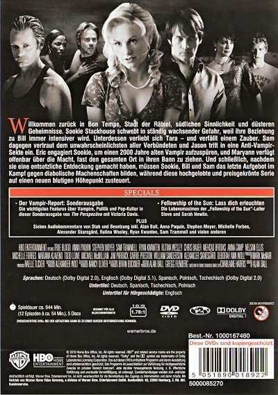 Willkommen zurück in Bon Temps, Stadt der Rätsel, südlichen Sinnlichkeit und düsteren Geheimnisse. Sookie Stackhouse schwebt in ständig wachsender Gefahr, weil ihre Beziehung zu Bill immer intensiver wird. Unterdessen verliebt sich Tara – und verfällt einem Zauber. Sam dagegen vertraut dem unwahrscheinlichsten aller Verbündeten und Jason tritt in eine Anti-Vampir-Sekte ein. Eric engagiert Sookie, um einen 2000 Jahre alten Vampir aufzuspüren, und Maryann verfügt offenbar über die Macht, fast den gesamten Ort in ihren Bann zu ziehen. Und schließlich, nachdem sie eine entsetzliche Entdeckung gemacht haben, müssen Sookie, Bill und Sam das letzte Aufgebot im Kampf gegen diabolische Machenschaften bilden, während diese hochgelobte und preisgekrönte Serie auf einen neuen blutigen Höhepunkt zusteuert.