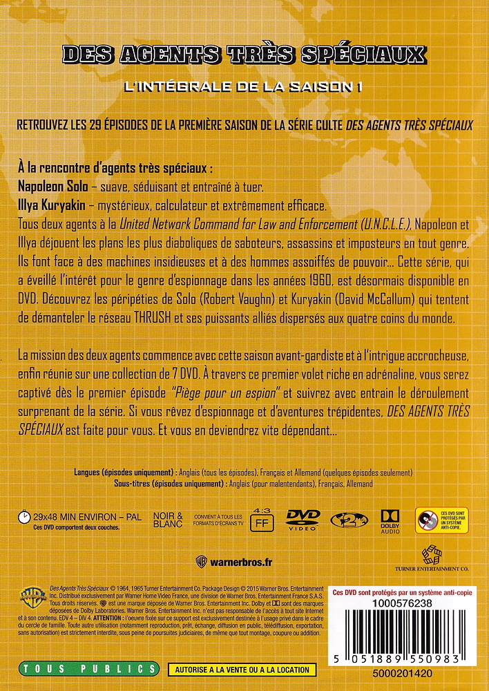 Cette série, qui a éveillé l'intérêt pour le genre d'espionnage dans les années 1960, est désormais disponible en DVD. Découvrez les péripéties de Solo (Robert Vaughn) et Kuryakin (David McCallum) qui tentent de démanteler le réseau THRUSH et ses puissants alliés dispersés aux quatre coins du monde.