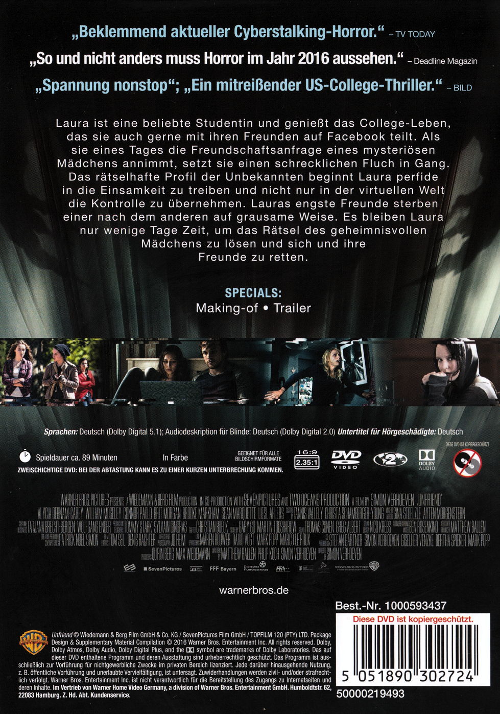 Die beliebte Studentin Laura geniesst das College-Leben, das sie gern auch mit ihren über 800 Freunden auf Facebook teilt. Aber als sie eines Tages die mysteriöse Freundschaftsanfrage der Aussenseiterin Marina annimmt, gerät sie in den Bann eines schrecklichen Fluchs: Lauras engste Freunde sterben auf grausame Weise. Ihr selbst bleiben nur wenige Tage Zeit, um das Rätsel des geheimnisvollen Mädchens und ihres Facebookprofils zu lösen und den tödlichen Bann zu brechen.