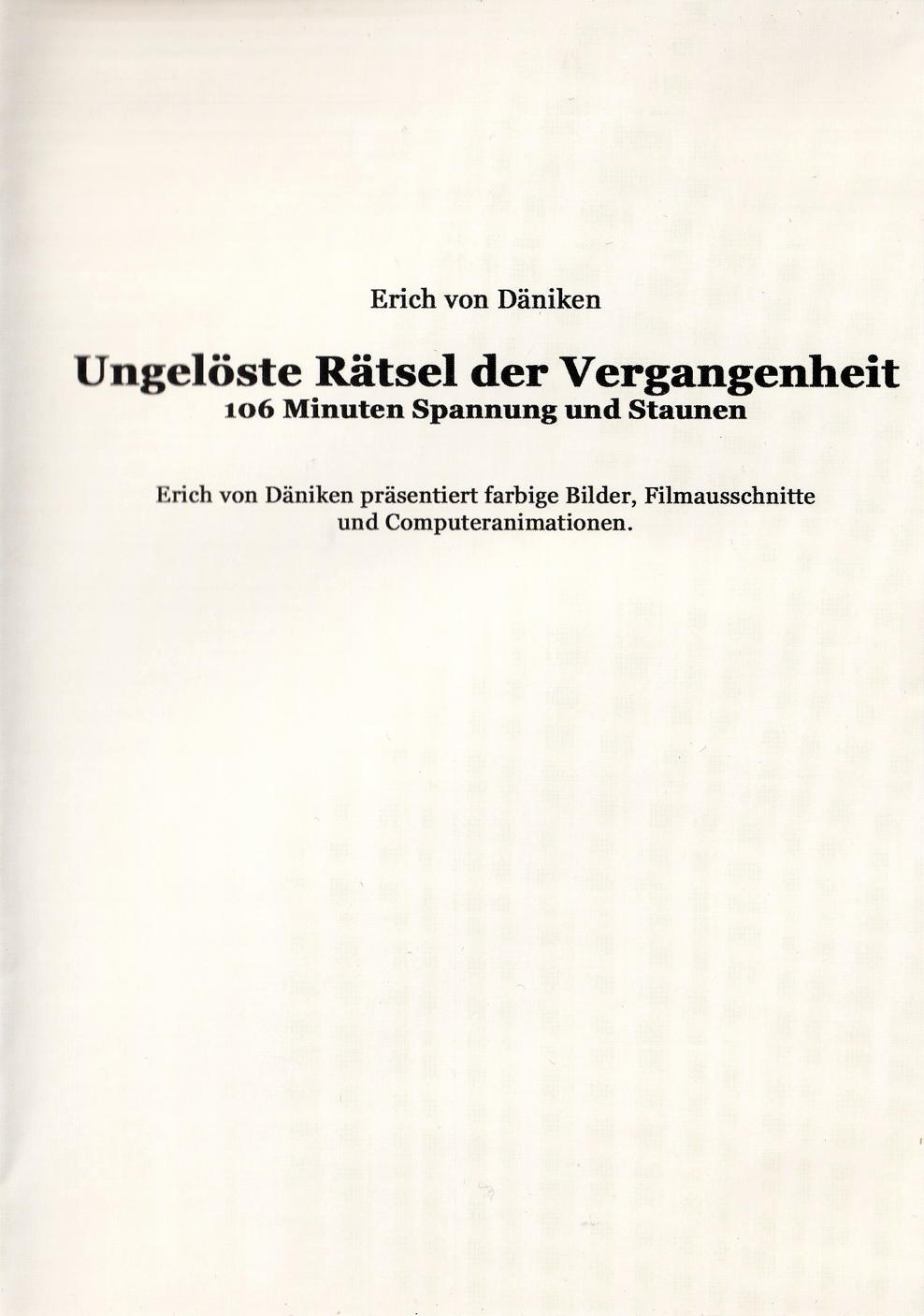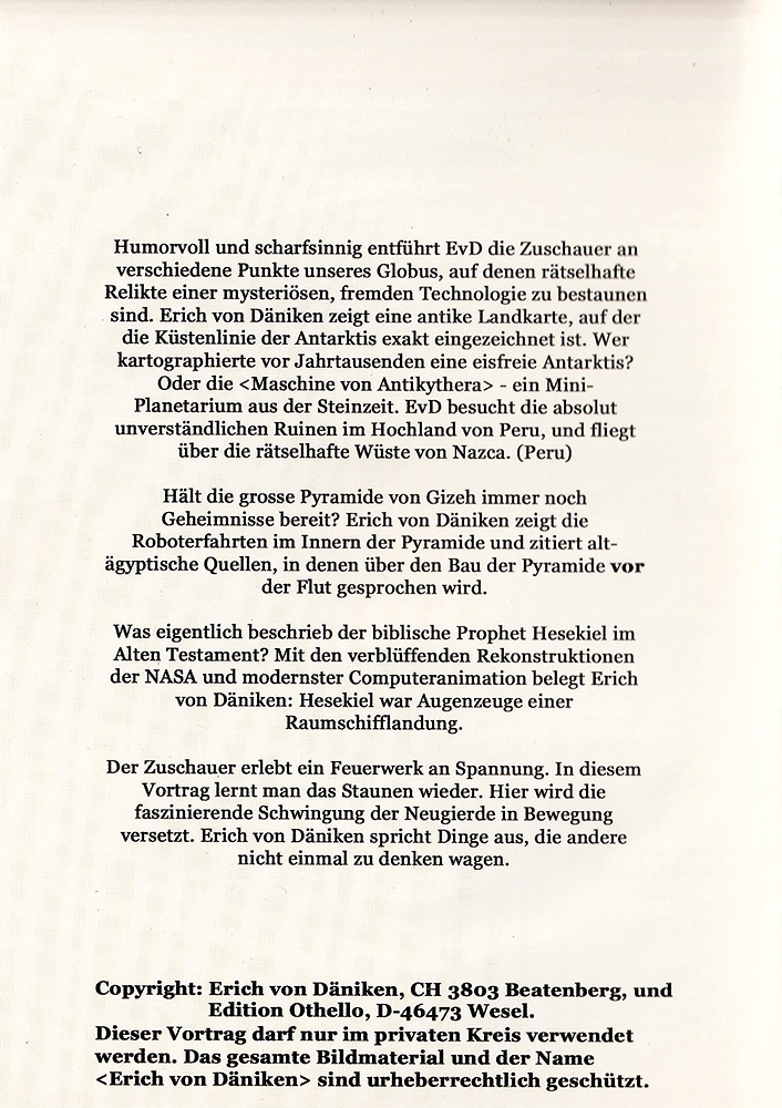 Erich von Däniken präsentiert farbige Bilder, Filmausschnitte und Computeranimationen.