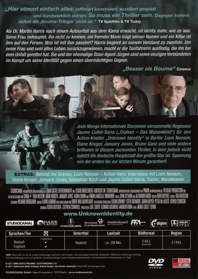 Als Dr. Martin Harris nach einem schweren Autounfall aus dem Koma erwacht, beginnt sein Albtraum erst: Seine Frau erkennt ihn nicht mehr und ein anderer Mann hat Harris Platz eingenommen. Nicht nur als ihr Ehemann, auch als angesehener Wissenschaftler, der auf einem Kongress einen wichtigen Vortrag halten sollte. Als wäre das nicht genug, wird er auch noch von einem Killer gejagt. Was ist mit ihm passiert? Harris beginnt an seinem Verstand zu zweifeln. Um seine Frau und sein altes Leben zurück zu gewinnen, macht er Gina ausfindig, die Taxifahrerin, die ihn bei dem Unfall gerettet hat. Sie und der ehemalige Stasi-Agent Jürgen sind seine einzigen Verbündeten im Kampf um seine Identität gegen einen übermächtigen Gegner.